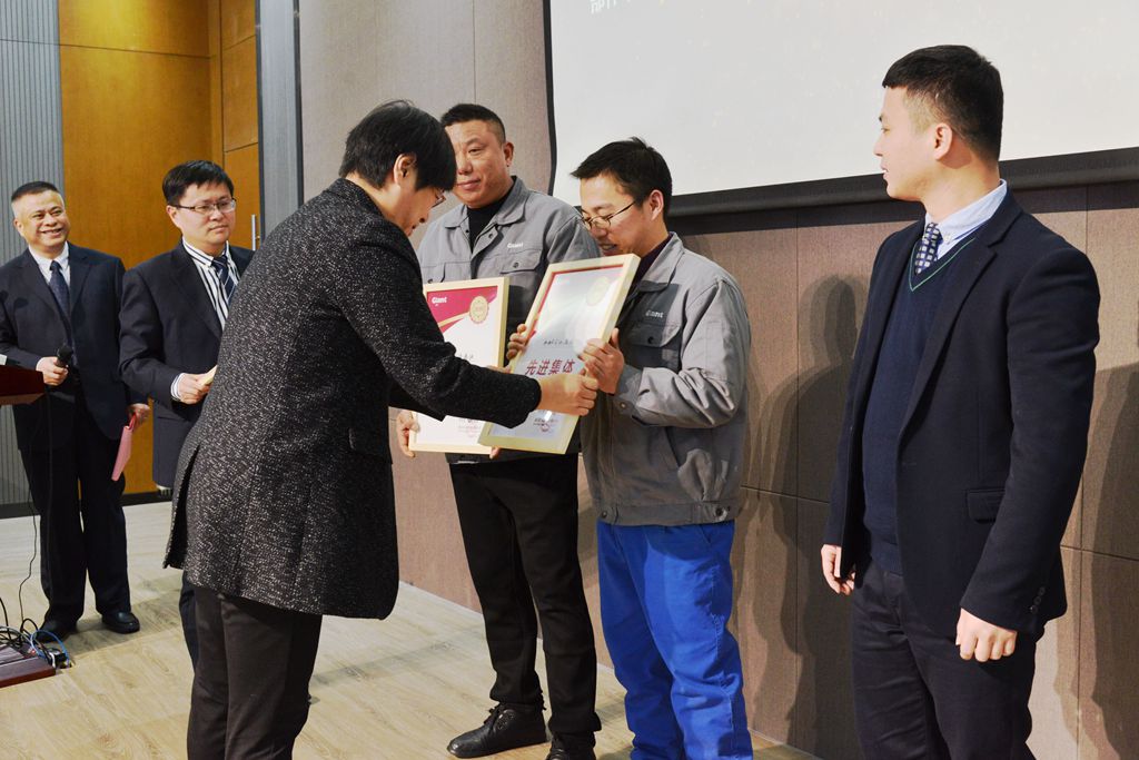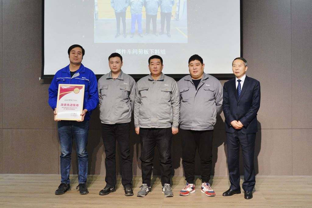 倡導(dǎo)工作改善,是核心價(jià)值觀之一“創(chuàng)新”這一概念在平凡崗位上的體現(xiàn),也是巨人的光榮傳統(tǒng)。2019年度,在降本、增效和技術(shù)、工藝創(chuàng)新等方面涌現(xiàn)了很多優(yōu)秀的員工與班組,大會(huì)授予陸永明“改善之星”獎(jiǎng);授予部件車間剪板下料組“改善先進(jìn)集體”獎(jiǎng);授予馮學(xué)龍、鄧紅秋、戴艇等員工提議并實(shí)施的三項(xiàng)改善措施為“優(yōu)秀改善提案”獎(jiǎng)。